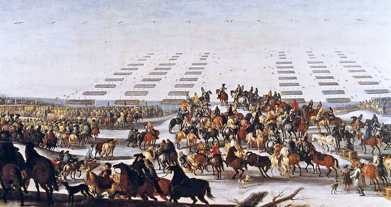 Overgangen over isen mellem 1658 mellem Langeland og Lolland. Maleri fra Nationalmuseet i Stockholm Johann Philip Lemke